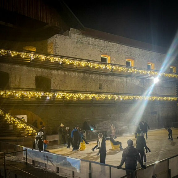 Poseben čar večera bo nočno drsanje na grajskem dvorišču, ko se bo drsališče zasvetilo v soju prazničnih lučk. Vroči napitki, okusne dobrote in toplo praznično vzdušje pa bodo poskrbeli, da vam bo prijetno – tudi če bodo temperature pravo zimske.