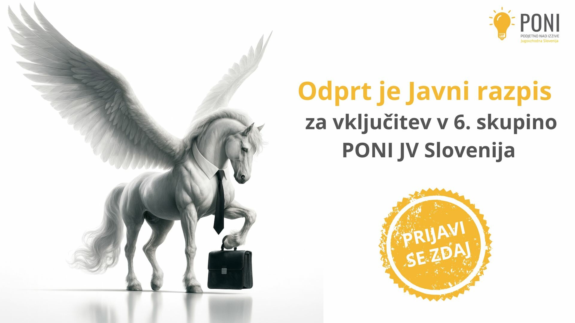 - Preberi objavljen Javni razpis za vključitev v projekt PONI in v skladu z navodili izpolni ter oddaj prijavni obrazec s prilogami. ROK JE 23. 1. 2026.