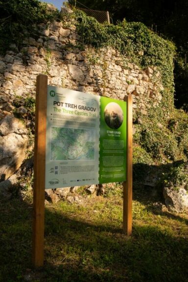 Naslednja pomembna točka na poti je Stari grad, ki stoji na razgledni točki nad Trško goro. Gre za srednjeveško grajsko poslopje, katerega ostanki pričajo o nekdanji strateški in upravni vlogi v pokrajini. Sledi prehod mimo naravnih znamenitosti, kot je Beceletova jama, in čez potok Lešnica. Tu se pohodniku odpre svet vinogradov in zidanic, ki so značilni za ta del Dolenjske.