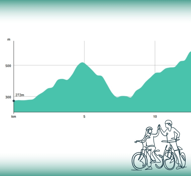 Zahtevna tura, primerna za dobro pripravljene kolesarje na klasičnih kolesih, ki uživajo v daljših in strmejših vzponih. Za ostale priporočamo e-kolesa, saj omogočajo lahkotnejšo vožnjo in več užitka v razgledih.