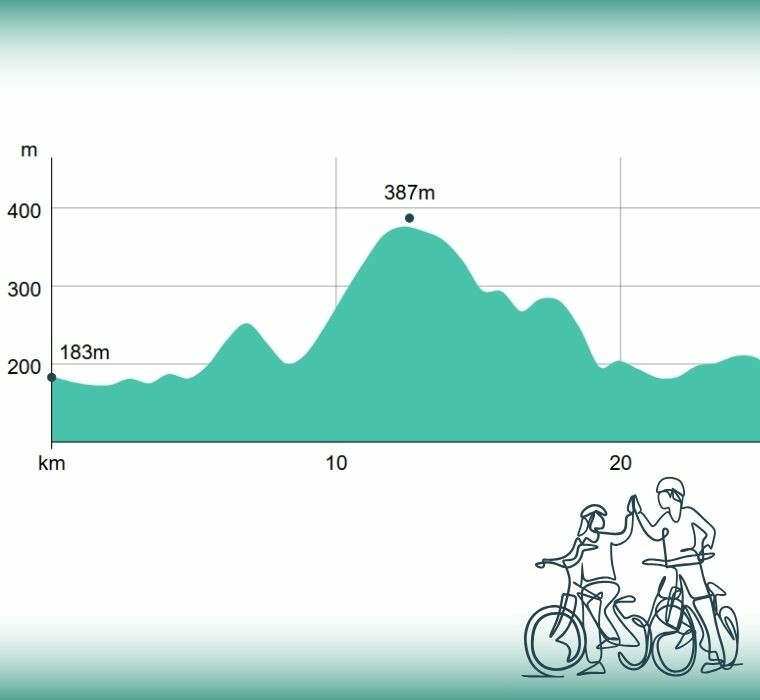 Primerna za srednje dobre pripravljene kolesarje. Za slabše priporočamo E-kolesa.