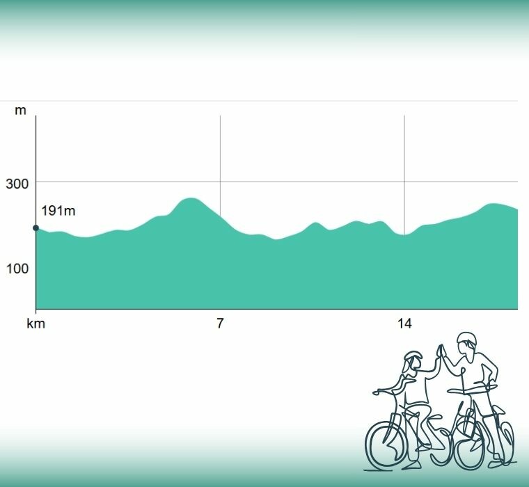 Trasa večinoma poteka po lepih asfaltnih cestah, od tega približno 90 % po mirnih lokalnih povezavah skozi zaselke, le 10 % pa po glavnih prometnicah. Vzponi imajo kratke, a nekoliko strmejše naklone, ki pa niso zahtevni.