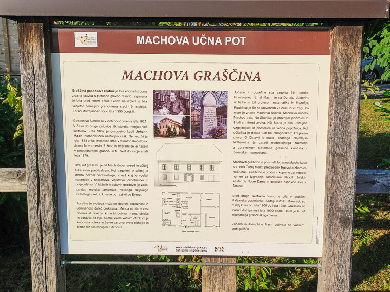 Sledi spust preko Velikega do Malega Slatnika. V Velikem Slatniku si lahko ogledamo tudi Machovo graščino. Ko dosežemo glavno cesto, zavijemo levo proti Novemu mestu. V križišču v Žabji vasi nadaljujemo naravnost skozi Glavni trg. Na naslednjem semaforiziranem križišču zavijemo desno proti Ločni. Pri križišču ob podjetju Krka zavijemo levo na kolesarsko stezo in po njej nadaljujemo do krožišča “tabletka”. Tam zavijemo desno proti nakupovalnemu središču Qlandia, nato v krožišču s Pletenko izberemo tretji izvoz in se vrnemo na izhodiščno točko.