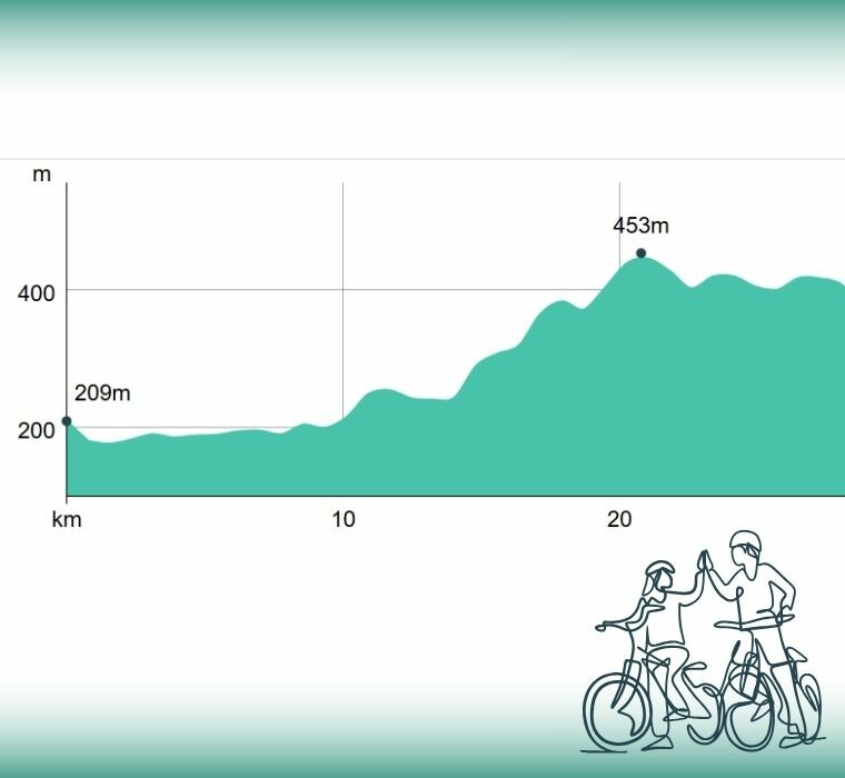 Za slabše fizično pripravljene kolesarje je priporočljiva uporaba e-kolesa, za ostale pa zadostuje srednja do dobra telesna pripravljenost. - Zanimivosti: