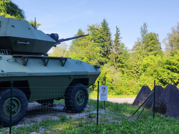Sledi približno dva kilometra vožnje po glavni cesti Novo mesto – Metlika. Nato zavijemo desno proti Stranski vasi. Na tem mestu si lahko ogledamo lokacijo, kjer je počil prvi strel v vojni za Slovenijo.